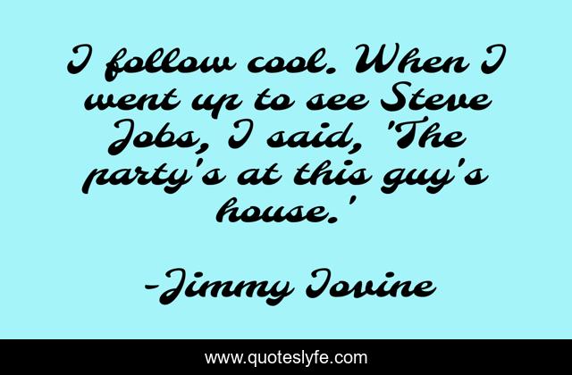 This page presents the quote "I follow cool. When I went up to see Steve Jobs, I said, 'The party's at this guy's house.'". Author of this quote is Jimmy Iovine. This quote is about party, see, said,.