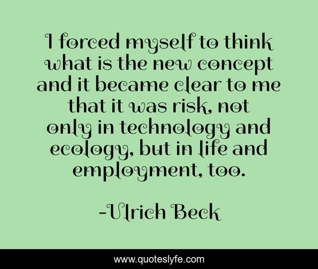 This page presents the quote "I forced myself to think what is the new concept and it became clear to me that it was risk, not only in technology and ecology, but in life and employment, too.". Author of this quote is Ulrich Beck. This quote is about me, life, myself,.