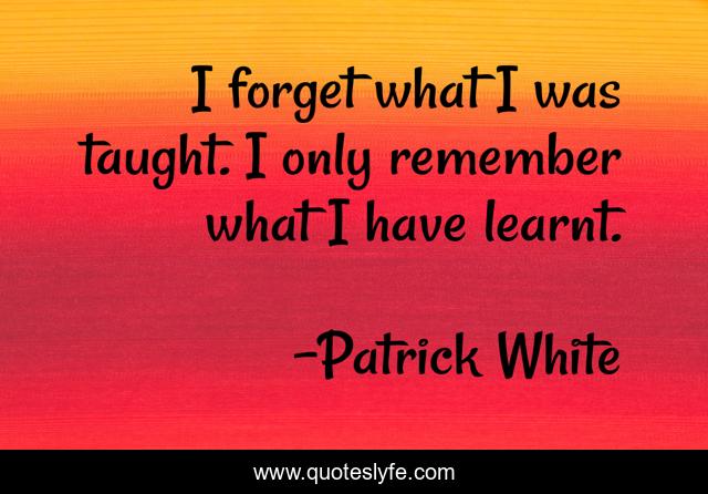 This page presents the quote "I forget what I was taught. I only remember what I have learnt.". Author of this quote is Patrick White. .