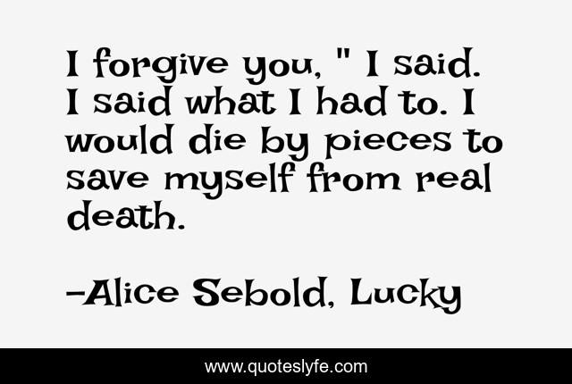 "Alice Sebold, Lucky Quotes." Quoteslyfe.com, 2025. Sat. 06 Dec. 2025. <https://www.quoteslyfe.com/quote/I-forgive-you-I-said-I-said-20984>.