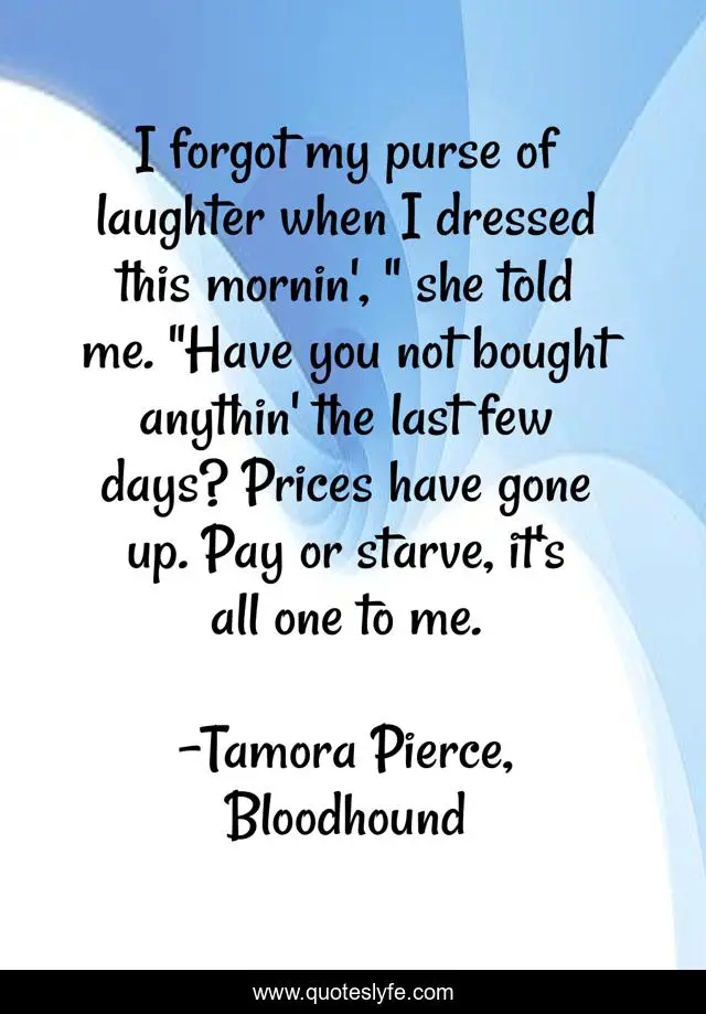 "Tamora Pierce, Bloodhound Quotes." Quoteslyfe.com, 2025. Sat. 06 Dec. 2025. <https://www.quoteslyfe.com/quote/I-forgot-my-purse-of-laughter-when-210779>.