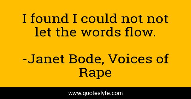 This page presents the quote "I found I could not not let the words flow.". Author of this quote is Janet Bode, Voices of Rape. This quote is about rape, voices,.