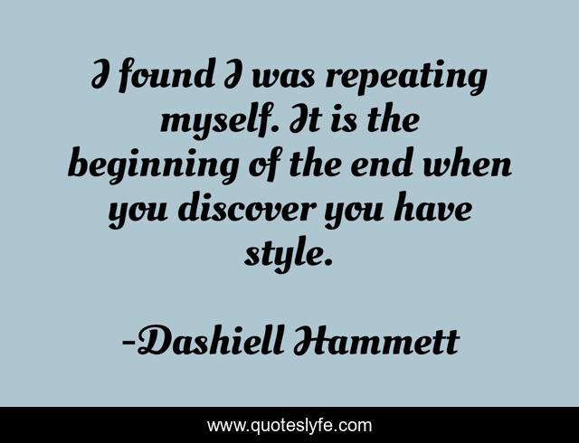 This page presents the quote "I found I was repeating myself. It is the beginning of the end when you discover you have style.". Author of this quote is Dashiell Hammett. .