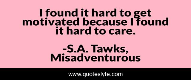 This page presents the quote "I found it hard to get motivated because I found it hard to care.". Author of this quote is S.A. Tawks, Misadventurous. This quote is about caring, motivation, australia, brisbane, crime, adventure, queensland, adventurous,.