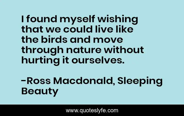 This page presents the quote "I found myself wishing that we could live like the birds and move through nature without hurting it ourselves.". Author of this quote is Ross Macdonald, Sleeping Beauty. .