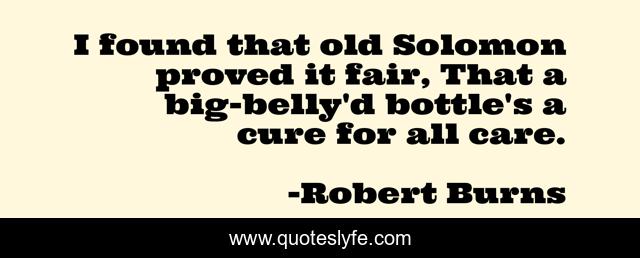 This page presents the quote "I found that old Solomon proved it fair, That a big-belly'd bottle's a cure for all care.". Author of this quote is Robert Burns. This quote is about drinking, carefree, good-advice,.