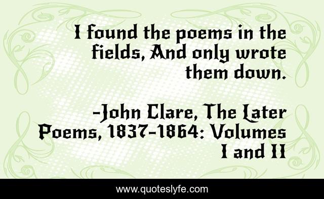 "John Clare, The Later Poems, 1837-1864: Volumes I and II Quotes." Quoteslyfe.com, 2025. Fri. 05 Dec. 2025. <https://www.quoteslyfe.com/quote/I-found-the-poems-in-the-fields-24618>.