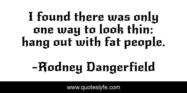 This page presents the quote "I found there was only one way to look thin: hang out with fat people.". Author of this quote is Rodney Dangerfield. This quote is about look, fat, people,.