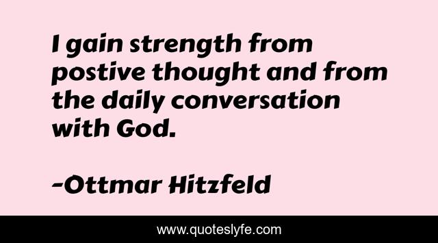 This page presents the quote "I gain strength from postive thought and from the daily conversation with God.". Author of this quote is Ottmar Hitzfeld. This quote is about god, daily, conversation,.