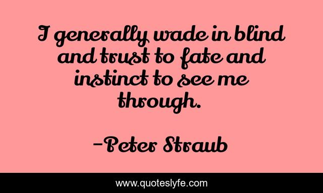 This page presents the quote "I generally wade in blind and trust to fate and instinct to see me through.". Author of this quote is Peter Straub. This quote is about blind, me, fate,.