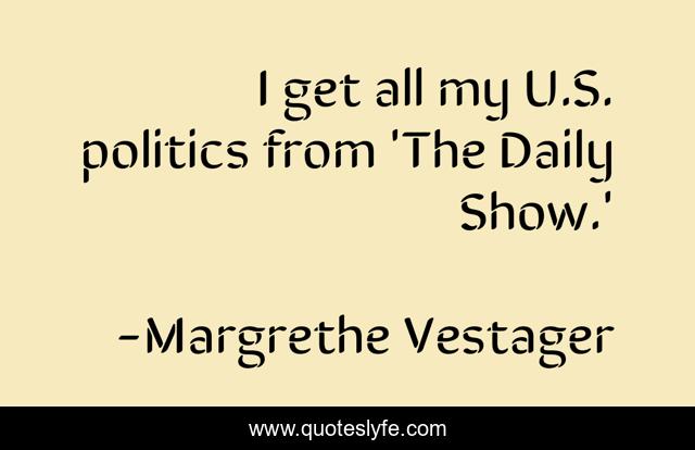 This page presents the quote "I get all my U.S. politics from 'The Daily Show.'". Author of this quote is Margrethe Vestager. This quote is about show, daily, get,.