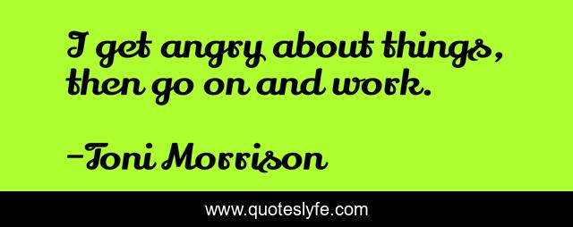 This page presents the quote "I get angry about things, then go on and work.". Author of this quote is Toni Morrison. This quote is about art, writing,.