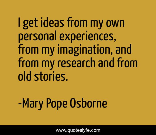 "Mary Pope Osborne Quotes." Quoteslyfe.com, 2025. Fri. 05 Dec. 2025. <https://www.quoteslyfe.com/quote/I-get-ideas-from-my-own-personal-317511>.