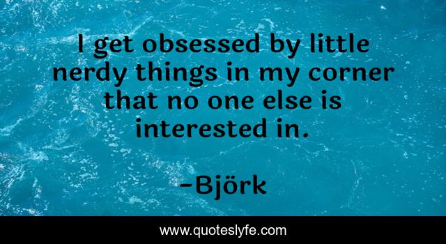 This page presents the quote "I get obsessed by little nerdy things in my corner that no one else is interested in.". Author of this quote is Björk. This quote is about girl, nerd-girl, nerds, nerd,.