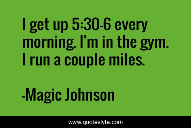 This page presents the quote "I get up 5:30-6 every morning. I'm in the gym. I run a couple miles.". Author of this quote is Magic Johnson. This quote is about gym, run, up,.