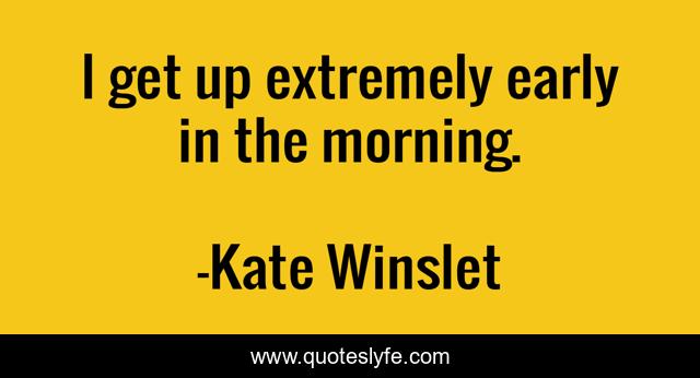 This page presents the quote "I get up extremely early in the morning.". Author of this quote is Kate Winslet. This quote is about early, extremely, up,.