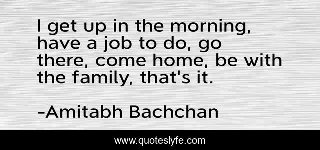 This page presents the quote "I get up in the morning, have a job to do, go there, come home, be with the family, that's it.". Author of this quote is Amitabh Bachchan. This quote is about home, job, family,.