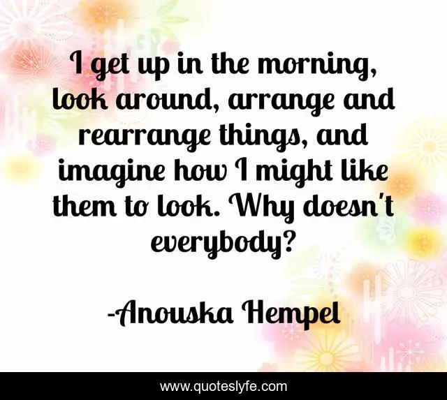 This page presents the quote "I get up in the morning, look around, arrange and rearrange things, and imagine how I might like them to look. Why doesn't everybody?". Author of this quote is Anouska Hempel. This quote is about why, up, look,.