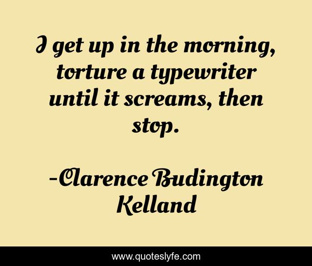 This page presents the quote "I get up in the morning, torture a typewriter until it screams, then stop.". Author of this quote is Clarence Budington Kelland. This quote is about stop, up, typewriter,.