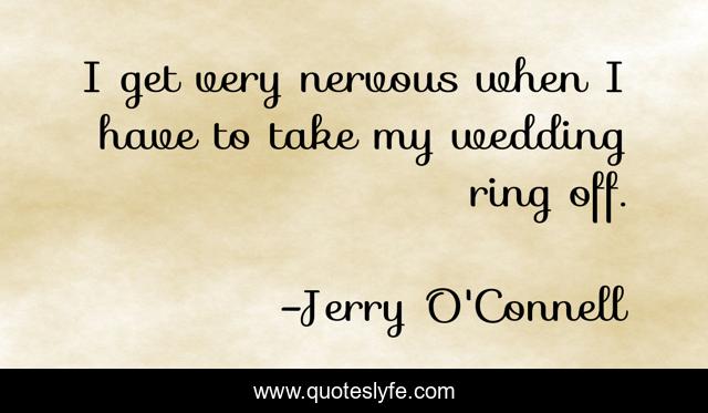 This page presents the quote "I get very nervous when I have to take my wedding ring off.". Author of this quote is Jerry O'Connell. This quote is about nervous, ring, wedding ring,.