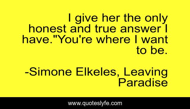 This page presents the quote "I give her the only honest and true answer I have."You're where I want to be.". Author of this quote is Simone Elkeles, Leaving Paradise. This quote is about lust, friends, love, affection,.