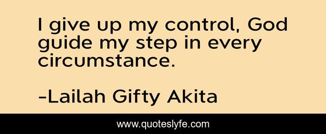 This page presents the quote "I give up my control, God guide my step in every circumstance.". Author of this quote is Lailah Gifty Akita. This quote is about control, inspiring, lailah-gifty-akita-affirmations, self-awareness, circumstances,.