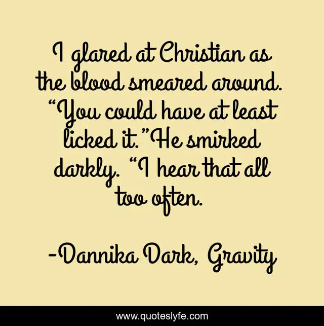 "Dannika Dark, Gravity Quotes." Quoteslyfe.com, 2025. Sat. 06 Dec. 2025. <https://www.quoteslyfe.com/quote/I-glared-at-Christian-as-the-blood-132447>.