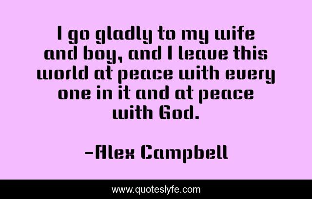 This page presents the quote "I go gladly to my wife and boy, and I leave this world at peace with every one in it and at peace with God.". Author of this quote is Alex Campbell. This quote is about god, wife, world,.