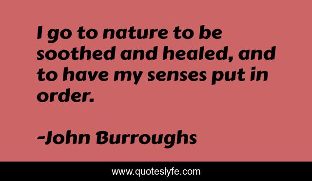 This page presents the quote "I go to nature to be soothed and healed, and to have my senses put in order.". Author of this quote is John Burroughs. This quote is about go, senses, order,.
