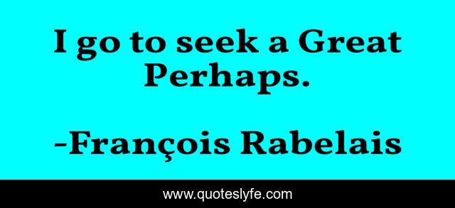 This page presents the quote "I go to seek a Great Perhaps.". Author of this quote is François Rabelais. This quote is about life, death, john-green, last-words, meaning-of-life, french-renaissance-writer, miles-halter, looking-for-alaska,.