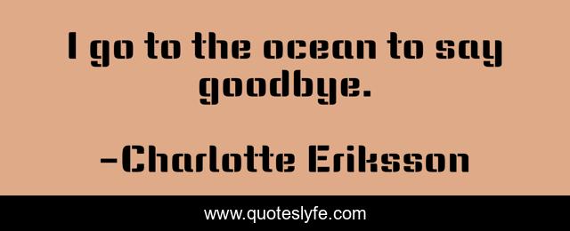 This page presents the quote "I go to the ocean to say goodbye.". Author of this quote is Charlotte Eriksson. This quote is about farewell, leaving, the-glass-child, goodbye, ocean,.