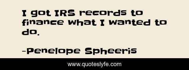 This page presents the quote "I got IRS records to finance what I wanted to do.". Author of this quote is Penelope Spheeris. This quote is about got, wanted, records,.