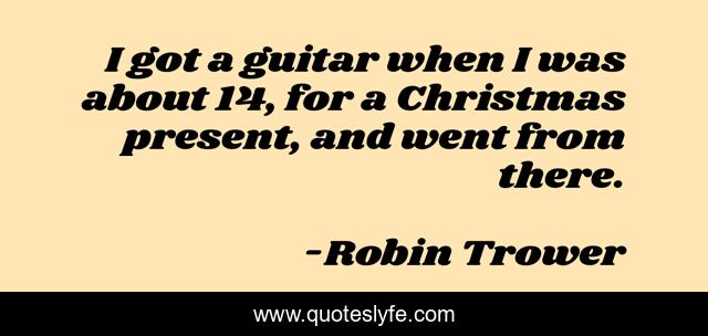 This page presents the quote "I got a guitar when I was about 14, for a Christmas present, and went from there.". Author of this quote is Robin Trower. This quote is about guitar, got, present,.