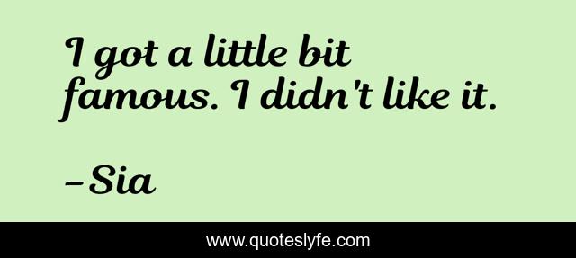 This page presents the quote "I got a little bit famous. I didn't like it.". Author of this quote is Sia. This quote is about got, little, like,.