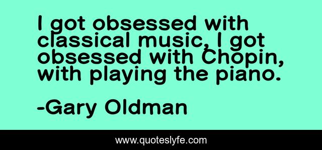 This page presents the quote "I got obsessed with classical music, I got obsessed with Chopin, with playing the piano.". Author of this quote is Gary Oldman. This quote is about piano, playing,.