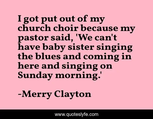This page presents the quote "I got put out of my church choir because my pastor said, 'We can't have baby sister singing the blues and coming in here and singing on Sunday morning.'". Author of this quote is Merry Clayton. This quote is about baby, sister, singing,.