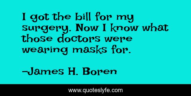 This page presents the quote "I got the bill for my surgery. Now I know what those doctors were wearing masks for.". Author of this quote is James H. Boren. This quote is about surgery, now,.