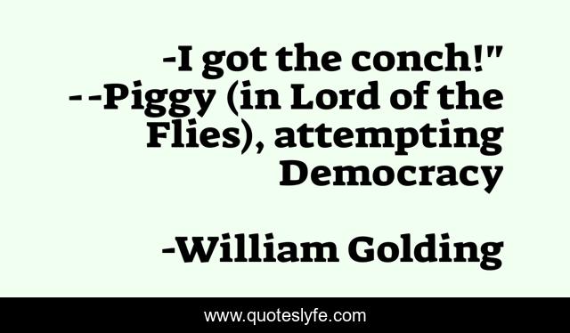 "William Golding Quotes." Quoteslyfe.com, 2025. Sat. 06 Dec. 2025. <https://www.quoteslyfe.com/quote/I-got-the-conch-Piggy-in-Lord-200184>.