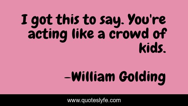 This page presents the quote "I got this to say. You're acting like a crowd of kids.". Author of this quote is William Golding. This quote is about irony, humour,.