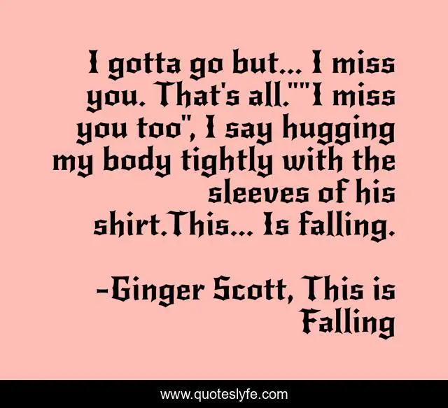 "Ginger Scott, This is Falling Quotes." Quoteslyfe.com, 2025. Fri. 05 Dec. 2025. <https://www.quoteslyfe.com/quote/I-gotta-go-but-I-miss-you-212656>.