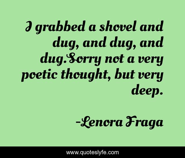 This page presents the quote "I grabbed a shovel and dug, and dug, and dug.Sorry not a very poetic thought, but very deep.". Author of this quote is Lenora Fraga. This quote is about insperational-thoughts, funny-and-random, thoughts,.