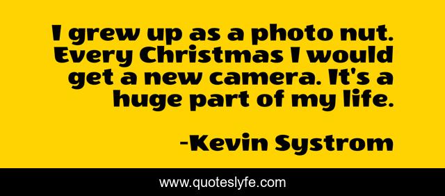 This page presents the quote "I grew up as a photo nut. Every Christmas I would get a new camera. It's a huge part of my life.". Author of this quote is Kevin Systrom. This quote is about life, camera, my life,.