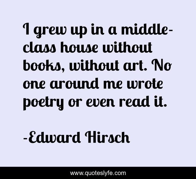 This page presents the quote "I grew up in a middle-class house without books, without art. No one around me wrote poetry or even read it.". Author of this quote is Edward Hirsch. This quote is about me, house, art,.