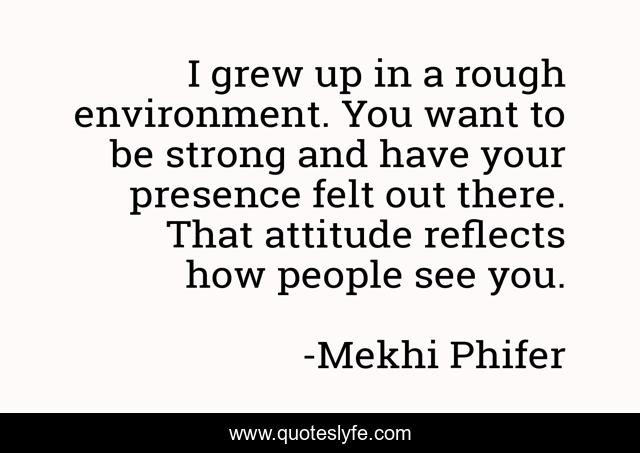 This page presents the quote "I grew up in a rough environment. You want to be strong and have your presence felt out there. That attitude reflects how people see you.". Author of this quote is Mekhi Phifer. This quote is about strong, be strong, people,.