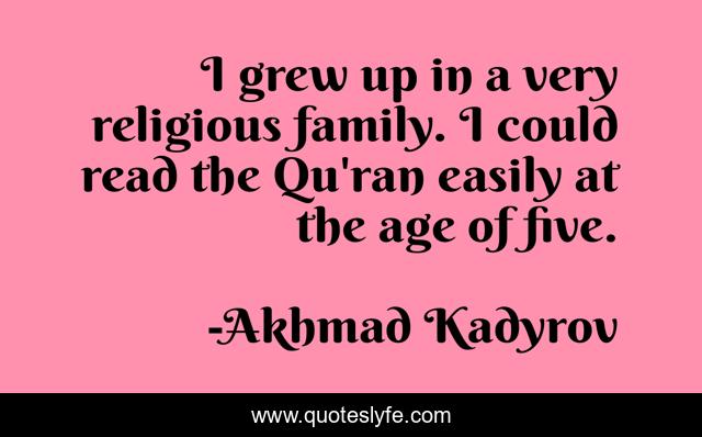 This page presents the quote "I grew up in a very religious family. I could read the Qu'ran easily at the age of five.". Author of this quote is Akhmad Kadyrov. This quote is about age, five, up,.