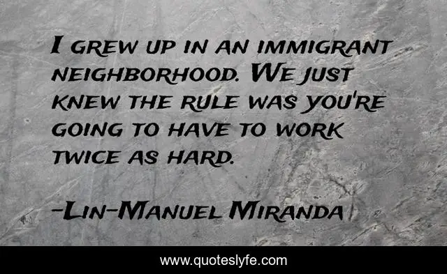 This page presents the quote "I grew up in an immigrant neighborhood. We just knew the rule was you're going to have to work twice as hard.". Author of this quote is Lin-Manuel Miranda. This quote is about neighborhood, immigrant,.