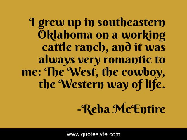 This page presents the quote "I grew up in southeastern Oklahoma on a working cattle ranch, and it was always very romantic to me: The West, the cowboy, the Western way of life.". Author of this quote is Reba McEntire. This quote is about me, life, working,.