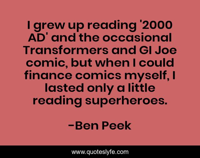 This page presents the quote "I grew up reading '2000 AD' and the occasional Transformers and GI Joe comic, but when I could finance comics myself, I lasted only a little reading superheroes.". Author of this quote is Ben Peek. This quote is about myself, reading, little,.