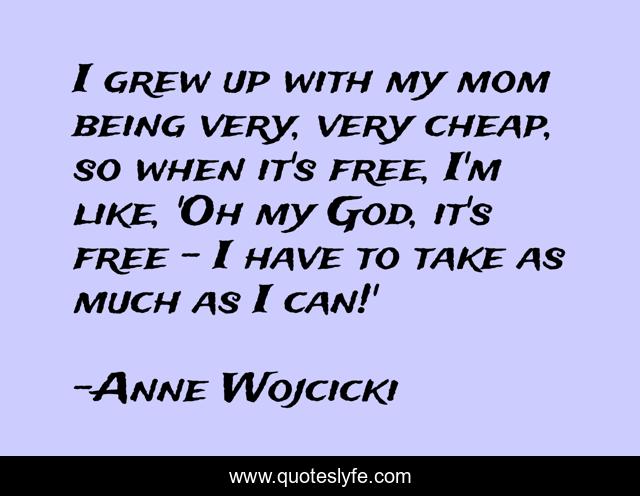 This page presents the quote "I grew up with my mom being very, very cheap, so when it's free, I'm like, 'Oh my God, it's free - I have to take as much as I can!'". Author of this quote is Anne Wojcicki. This quote is about god, free, i can,.