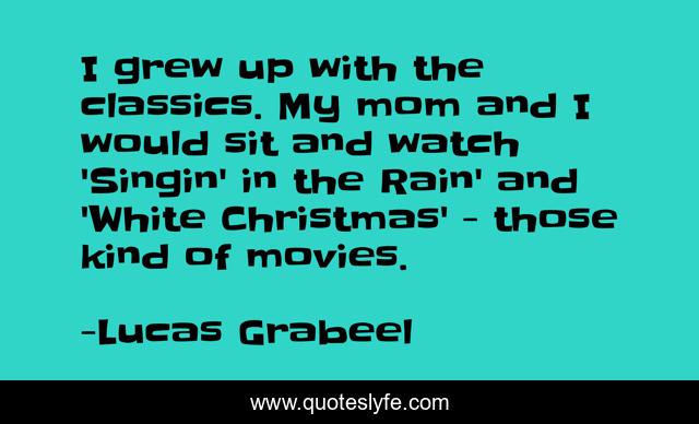 This page presents the quote "I grew up with the classics. My mom and I would sit and watch 'Singin' in the Rain' and 'White Christmas' - those kind of movies.". Author of this quote is Lucas Grabeel. This quote is about movies, rain, mom,.
